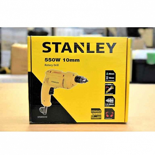 Безударная дрель STANLEY STDR 5510 (STDR5510-RU) предназначена для сверления разных материалов. Может работать со сталью, деревом, камнем, алюминием, бетоном, мрамором. Устройство не отличается повышенной мощностью. Но, несмотря на это, подходит для выполнения лёгких и средних по сложности работ, которые встречаются как на строительной площадке, так и в домашних условиях. Отличительными особенностями инструмента являются малые габариты, яркий внешний вид, небольшой вес и простота использования.
