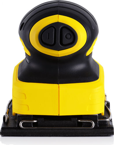 Преимущества – яркий жёлтый цвет. Такое устройство будет сложно потерять. Второй плюс – хорошая мощность в 220 Вт и малая амплитуда колебаний в 1,6 мм. Третье преимущество – это возможность использовать машинку одной рукой. Она компактная и эффективно обрабатывает поверхность даже при одноручном управлении.