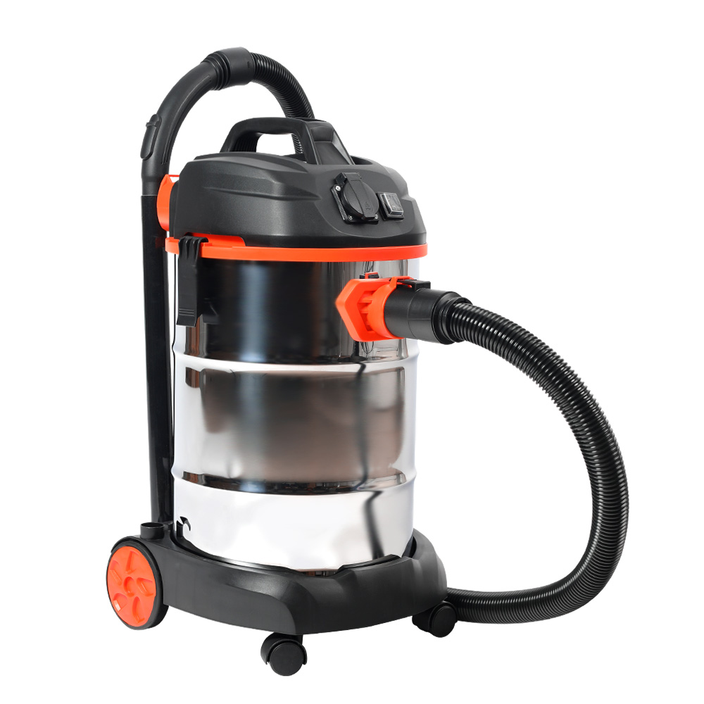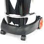 В нижней части находятся прочные колёсики, которые крутятся в разные стороны, а значит позволяют пылесосу быстро передвигаться по различным поверхностям. Модель компактная и мобильная. Бак произведён из нержавеющей стали, что увеличивает срок использования в разы. Объём бака достаточный для того, чтобы за один заход убрать весь мусор, который был накоплен за день. Кроме того, бак не подвергается воздействию коррозии, плесени.