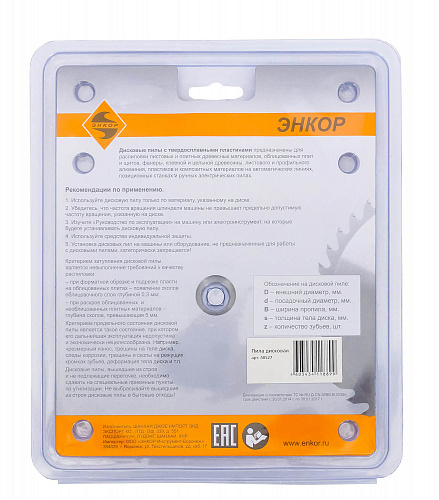 Специальная схема заточки твердосплавных зубьев позволяет производить качественную распиловку древесины. Компенсационные прорези уменьшают колебания, подавляют шумы и препятствуют изгибанию диска при нагреве.