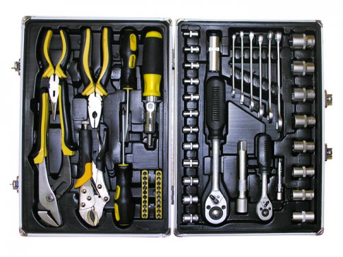 Набор инструментов Энкор, 59 предметов 57055 - качественный, надежный помощник при ремонтных и монтажных работах в быту и различных мастерских. Функциональный набор включает в себя 59 предметов, компактно упакованных в прочный алюминиевый кейс. Материал рабочих частей инструментов - легированная сталь. Эргономичные рукоятки инструментов не скользят в руке. |