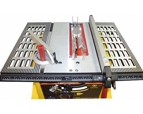 Рабочий стол, на котором производится распиливание, изготовлен методом литья из высокопрочного чугуна, что обеспечивает его максимальную прочность, стабильность и устойчивость ко всем видам механического воздействия. Его габариты составляют 700*465 – достаточно серьезный показатель, однако в случае необходимости работы с крупными изделиями необходимо будет приобретать специальные роликовые стенды, так как возможности присоединения удлинителей не предусмотрено.