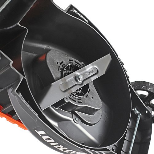 Модель работает от электрической энергии. Для подключения достаточно вставить вилку в розетку в сеть, напряжением в 220 Вольт. Запускается модель путём нажатия на рычаг старта, расположенный в удобном для оператора положении – справа на рукоятке. Скошенная трава предусмотрительно собирается в специальный отсек. После завершения работ, достаточно демонтировать данный отсек и выкинуть скошенную траву.