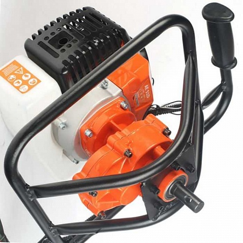 Оснащен системой для быстрого торможения бура, что делает работу с бензобуром безопасной.
